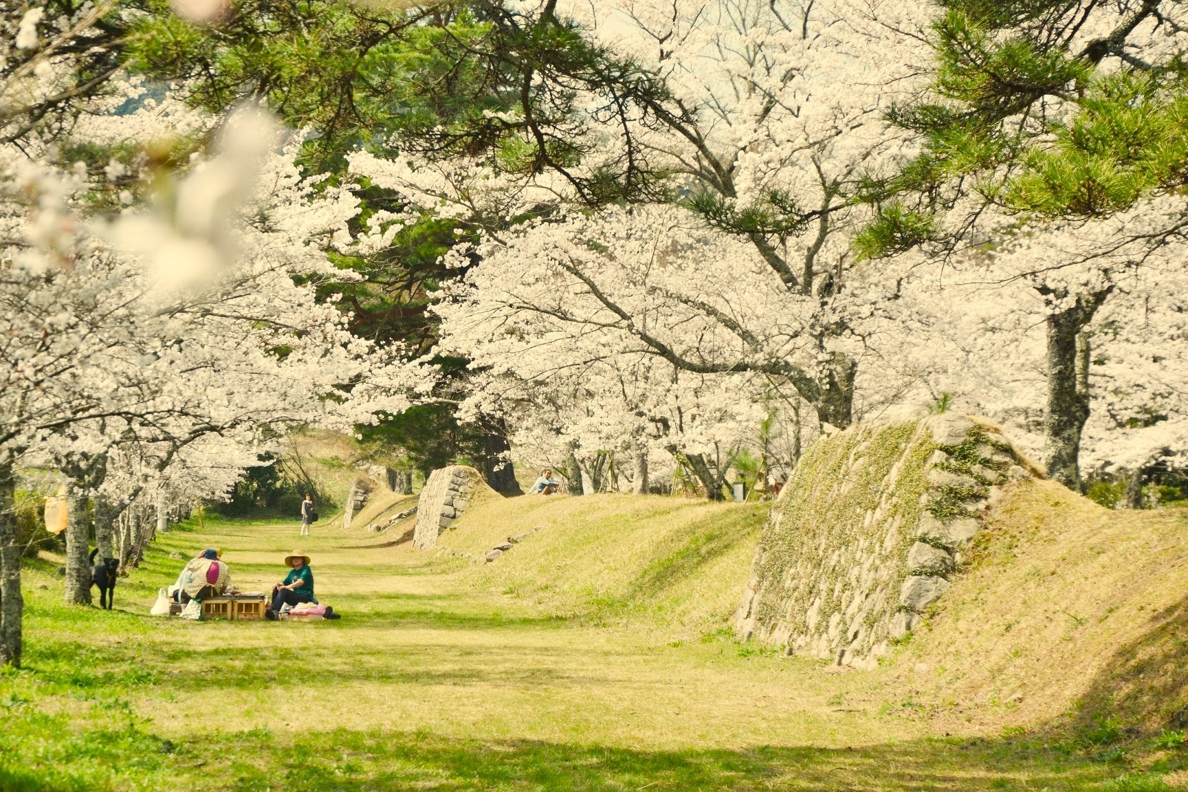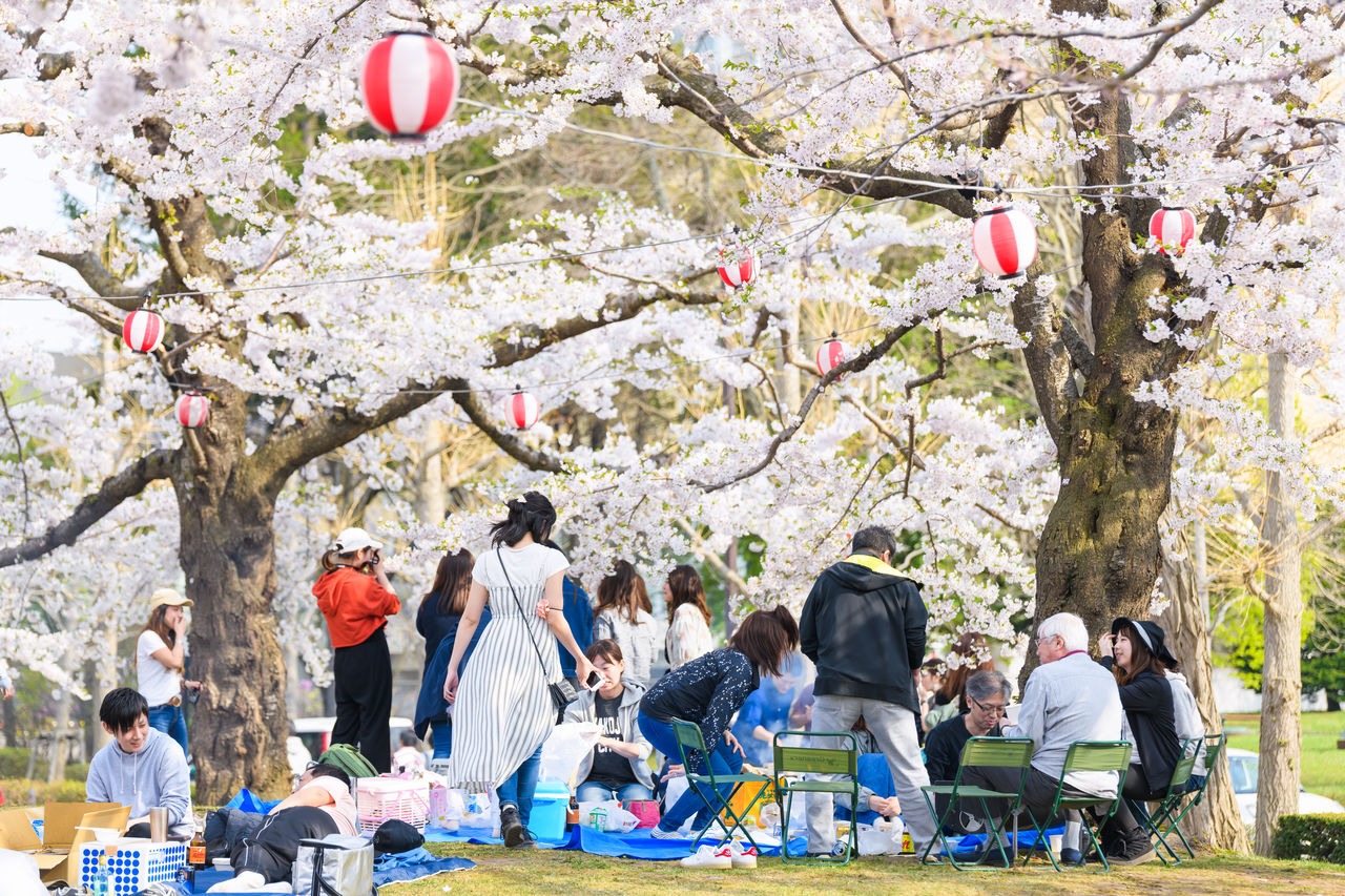 Người dân địa phương và du khách tổ chức picnic dưới tán hoa anh đào