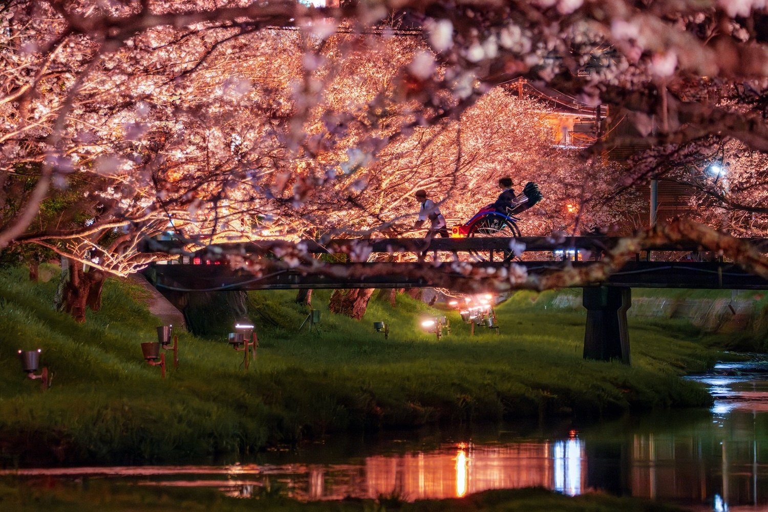 Đi xe kéo ngắm hoa anh đào ban đêm