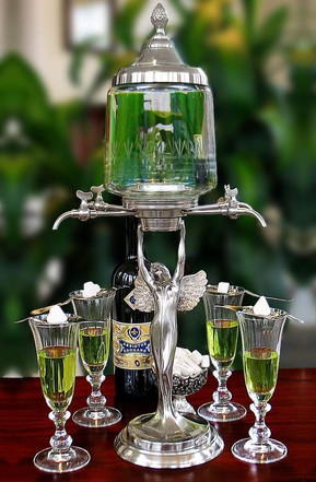Và 5 giờ chiều hàng ngày absinth được ưu ái gọi là "Green Hour", một thời điểm hưng thịnh nhất của các quán cà phê khi trên bàn xếp đầy những ly rượu màu xanh tươi. Hàng triệu văn nghệ sĩ đã quy phục dưới chân absinth và đồ uống này nghiễm nhiên kích thích các sáng tạo văn chương, nghệ thuật. Mỗi người đều tự trang bị cho mình những chiếc ly chuyên dụng, muỗng, đường để làm dịu vị đắng và dụng cụ lọc để pha loãng absinth, như một giấc mơ để lọc thành kiệt tác đời mình.