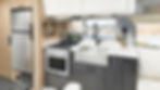 Chiếm phần lớn không gian là bộ ghế sofa hình chữ L tùy chỉnh trang nhã. Bên cạnh đó, bồn rửa tiện nghi tích hợp nắp đậy gỗ óc chó có chức năng như một chiếc thớt và các thiết bị bếp từ thép không gỉ giúp tăng thêm phần sáng tạo cho căn hộ. Chủ nhân có thể dùng lò nướng và tủ lạnh phục vụ các bữa tiệc giải trí. Giữa khu vực ăn uống và phòng ngủ là nhà vệ sinh và phòng tắm tiện dụng.