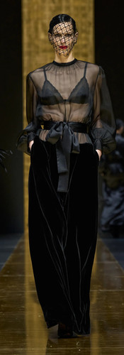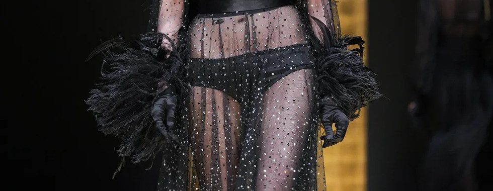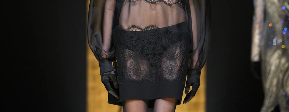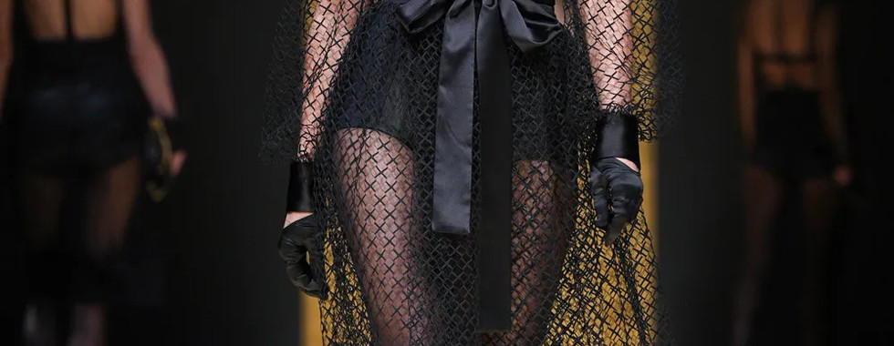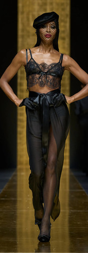 Bên cạnh tailoring, một điểm nhấn đặc sắc nhất BST mùa này của Dolce & Gabbana là các thiết kế mang đậm hơi thở Boudoir chốn khuê phòng làm bằng chất liệu trong suốt hết mực quyến rũ như ren, lưới và chiffon. Mỗi thiết kế tô điểm sự nữ tính cũng như nêu bật thông điệp trao quyền cho phụ nữ của ngôi nhà thời trang Ý.