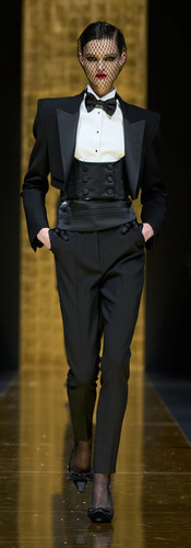 Vẫn là phom dáng cổ điển đặc trưng của bộ tuxedo kiểu Ý với dáng áo đồng hồ cát, hàng khuy cao, không xẻ tà đuôi áo, cạp quần thon ôm eo hay gấu chạm mắt cá chân, các thiết kế âu phục trong BST được bộ đôi Domenico Dolce và Stefano Gabbana cách tân với cấu trúc lửng, phần vai mở rộng, cạp cách điệu kiểu cummerbund (khăn thắt lưng)… Tất cả tạo nên nét duyên dáng, nữ tính cho những bộ tuxedo quá đỗi cứng cáp và mạnh mẽ.