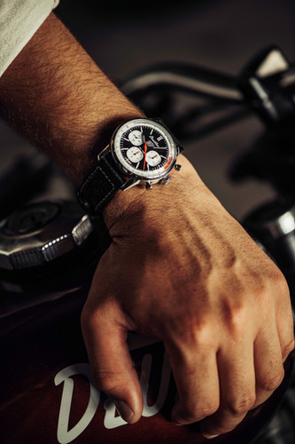 Chiếc đồng hồ này có thể được lựa chọn với dây đeo da bò màu đen thiết kế theo phong cách đua xe hoặc dây đeo bằng kim loại mạch tạo sự linh hoạt cho phong cách cá nhân của chủ sở hữu. Đặc biệt, kim giờ chạy giữa được thiết kế giống như một tia sét làm tăng sự độc đáo và nổi bật của chiếc đồng hồ.