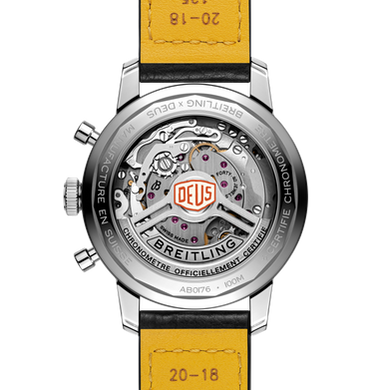 Được trang bị bộ máy Calibre Breitling Manufacture Caliber 01 đằng sau sẽ đảm bảo độ chính xác, tin cậy cũng như bền bỉ. Logo màu đỏ huyền thoại Deus sau lớp vỏ sapphire trong suốt được đặt ở trung tâm sẽ tạo điểm nhấn thú vị.