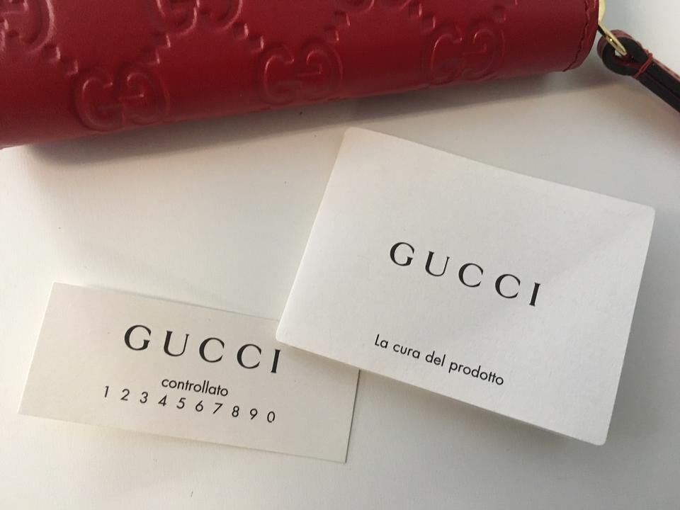 Một cách khác để phân biệt túi xách hàng hiệu thật và giả chính là kiểm tra mác hoặc thẻ đảm bảo hàng thật. Thẻ của Gucci thường có dòng chữ “GUCCI” viết in hoa màu xám đậm trên nền trắng. Ngay bên dưới là dòng chữ “controllato” và dãy số 1 2 3 4 5 6 7 8 9 0. Mặt sau thẻ để trống.