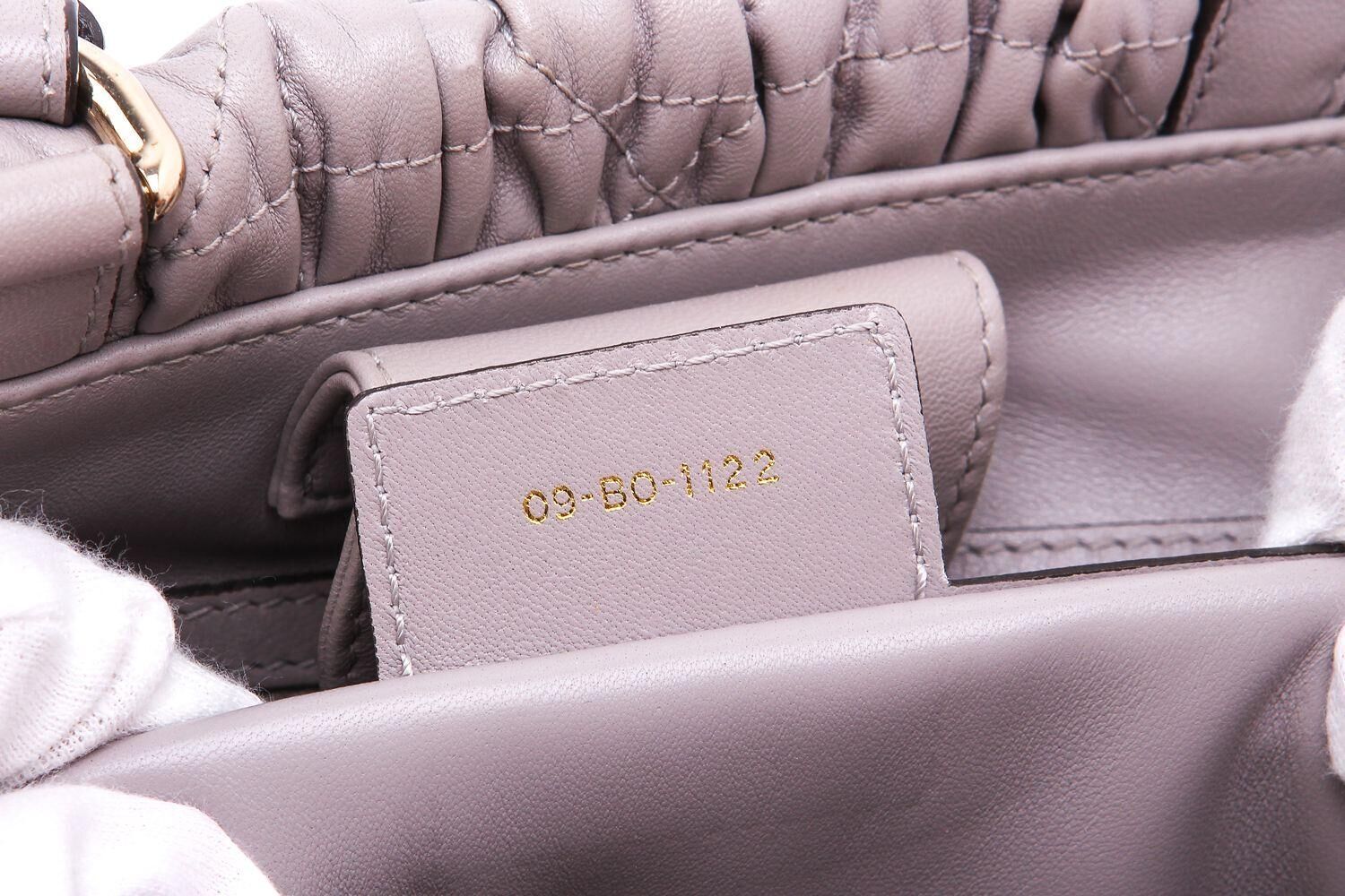 Dior thiết kế mác dưới dạng một thẻ có viền thuôn tròn từ chất liệu da bên trong túi xách. Mặt trước là logo Christian Dior và mặt sau là số serie được in hoa hoàn toàn. Những chiếc túi Prada thường có một thẻ giấy nhỏ màu trắng in một con số ngẫu nhiên bên trong.