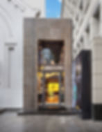 Thiết kế boutique mang đậm phong cách đương đại, phối hợp sắc vàng đặc trưng của thương hiệu cùng với chất liệu nền được kết hợp sáng tạo, mang lại một kiến trúc có tổng thể ấn tượng