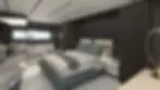 Trong khi đó, nội thất trên thuyền có bố cục gồm năm cabin và khu đại sảnh được lắp cửa kính lớn nhằm tận dụng tối đa ánh sáng tự nhiên. Người mua cũng thể chọn đổi sang dạng bố cục bốn cabin, cho phép bổ sung thêm một phòng khách phụ.