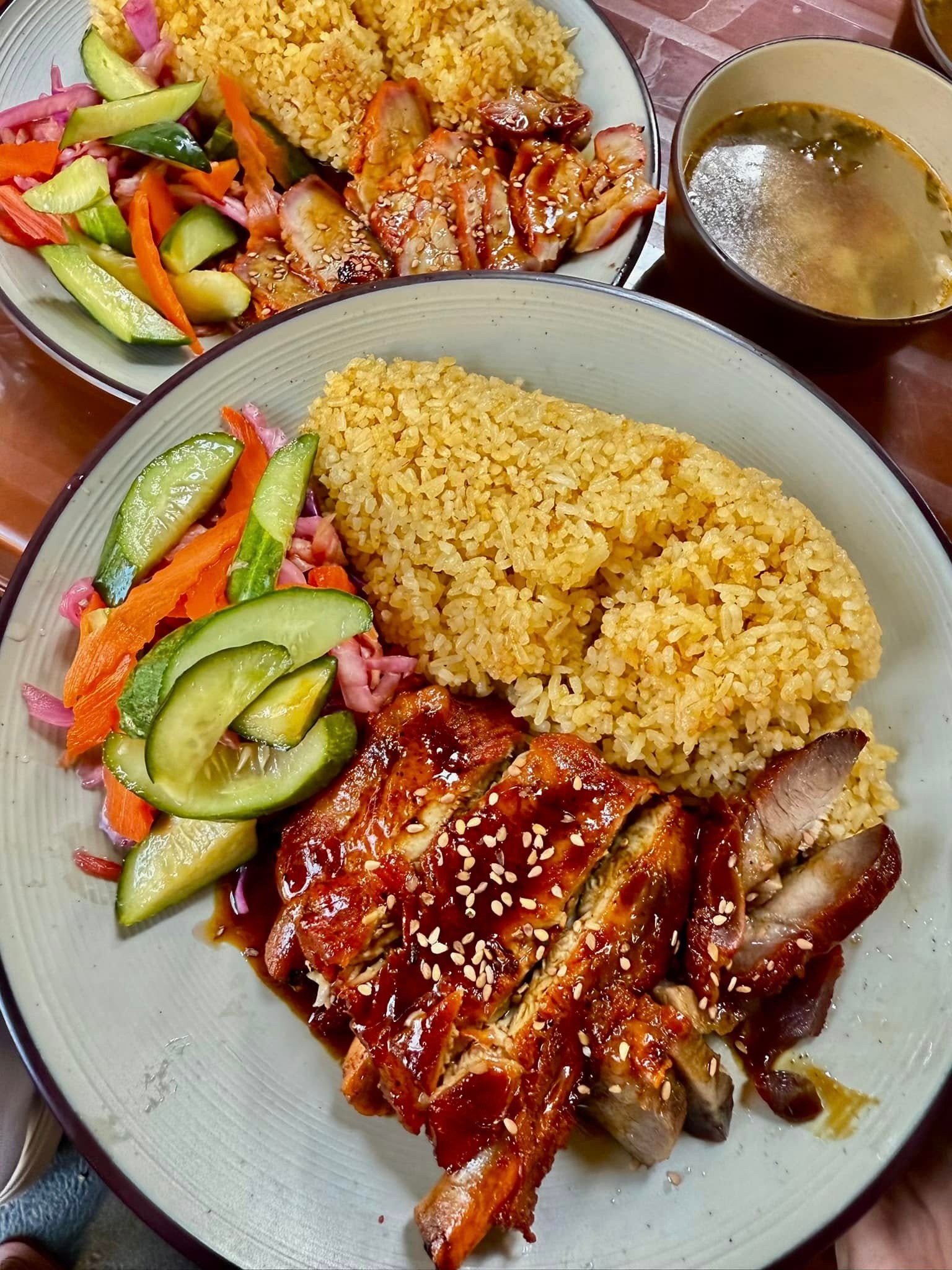 Cơm đảo gà rang và xá xíu ở Hà Nội