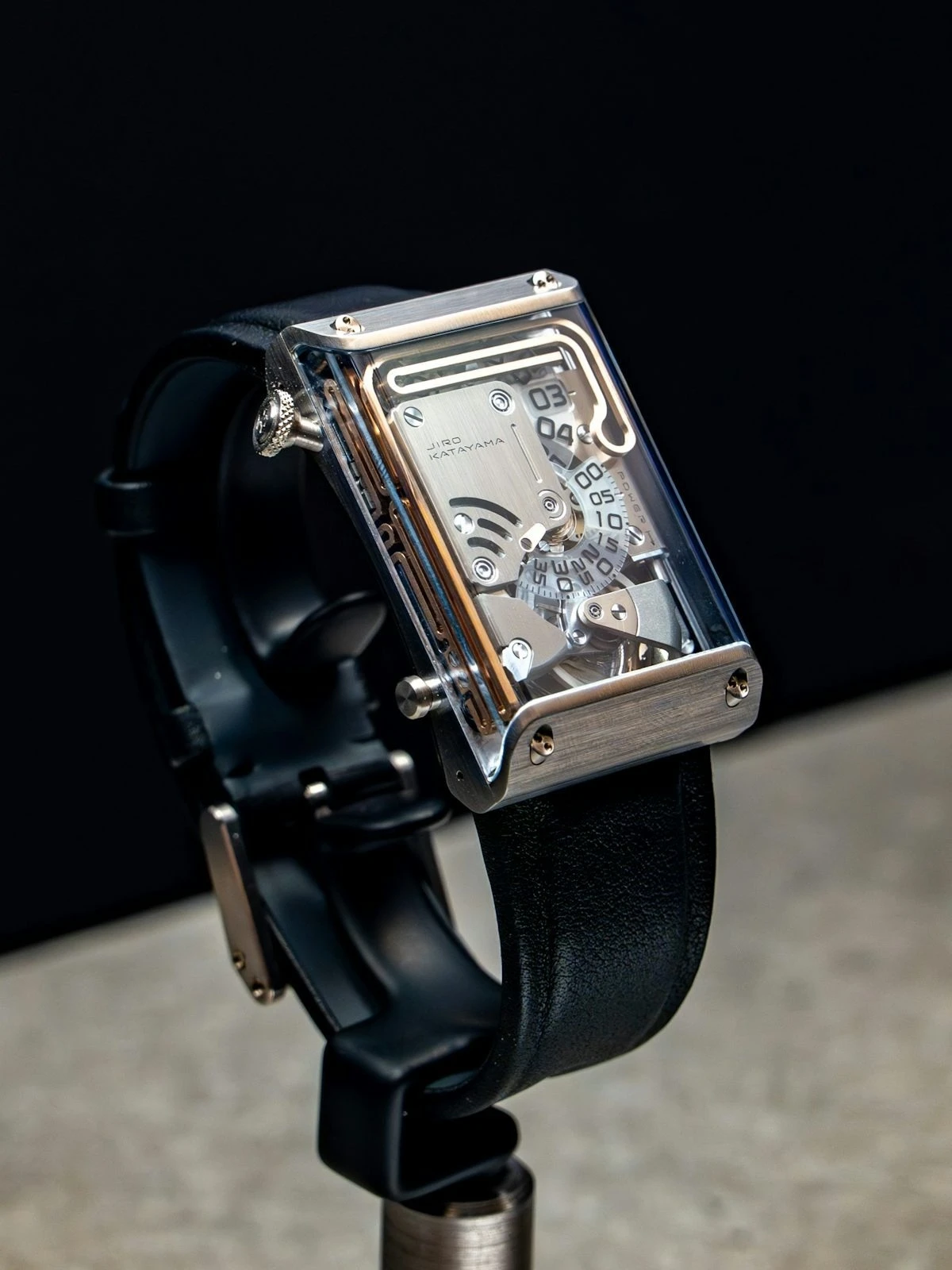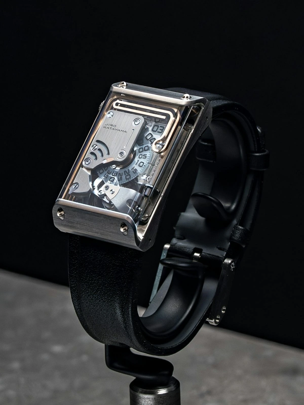 Ōtsuka Lōtec No. 9 là mẫu phức tạp và đắt giá nhất từng được giới thiệu bởi thương hiệu trẻ đến từ Nhật Bản. Dưới bàn tay của nhà chế tác Jiro Katayama, bộ máy SSGT tự phát triển (dựa một phần trên nền Unitas) tích hợp cùng lúc cơ chế giờ nhảy, phút hồi ngược, tourbillon và điểm chuông. Cách hiển thị thời gian sử dụng hai đĩa trong suốt chồng lên nhau, được chiếu sáng từ phía sau bằng hai khối dạ quang để có thể dễ dàng đọc trong mọi điều kiện. Giống các mẫu trước của Katayama, Ōtsuka Lōtec No. 9 chỉ phân phối độc quyền tại Nhật Bản, với giá khoảng 110.000 USD. Ảnh: Ōtsuka.