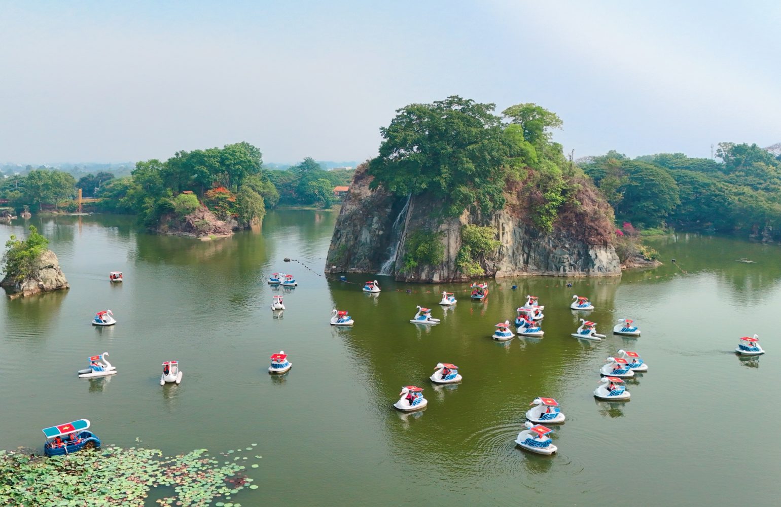 Cảnh quan hồ và núi thơ mộng, chùa cổ và nhiều trò chơi trên bờ, dưới nước. Đây là điểm picnic và check-in nổi tiếng ở Biên Hòa.