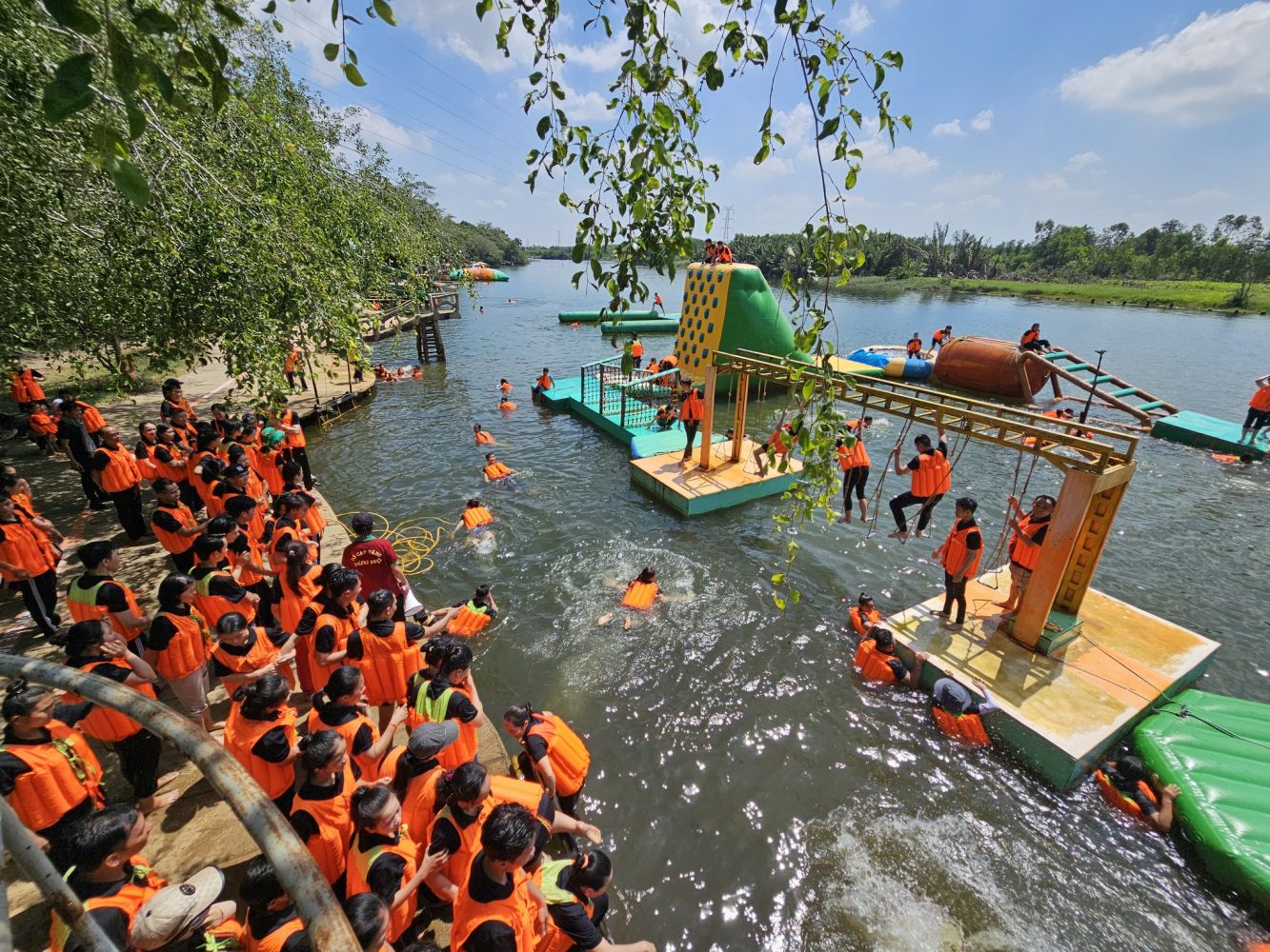 Tại đây, bạn có thể tham gia hàng loạt trò chơi thú vị cả trên bờ lẫn dưới nước, từ các trò chơi dân gian như đi cầu dừa, cầu dây, cầu lắc, bắt cá, đến những trải nghiệm cảm giác mạnh như trượt zipline trên không hay chèo SUP. Khu du lịch còn là địa điểm hoàn hảo để tổ chức team-building, các hoạt động tập thể sôi nổi.
