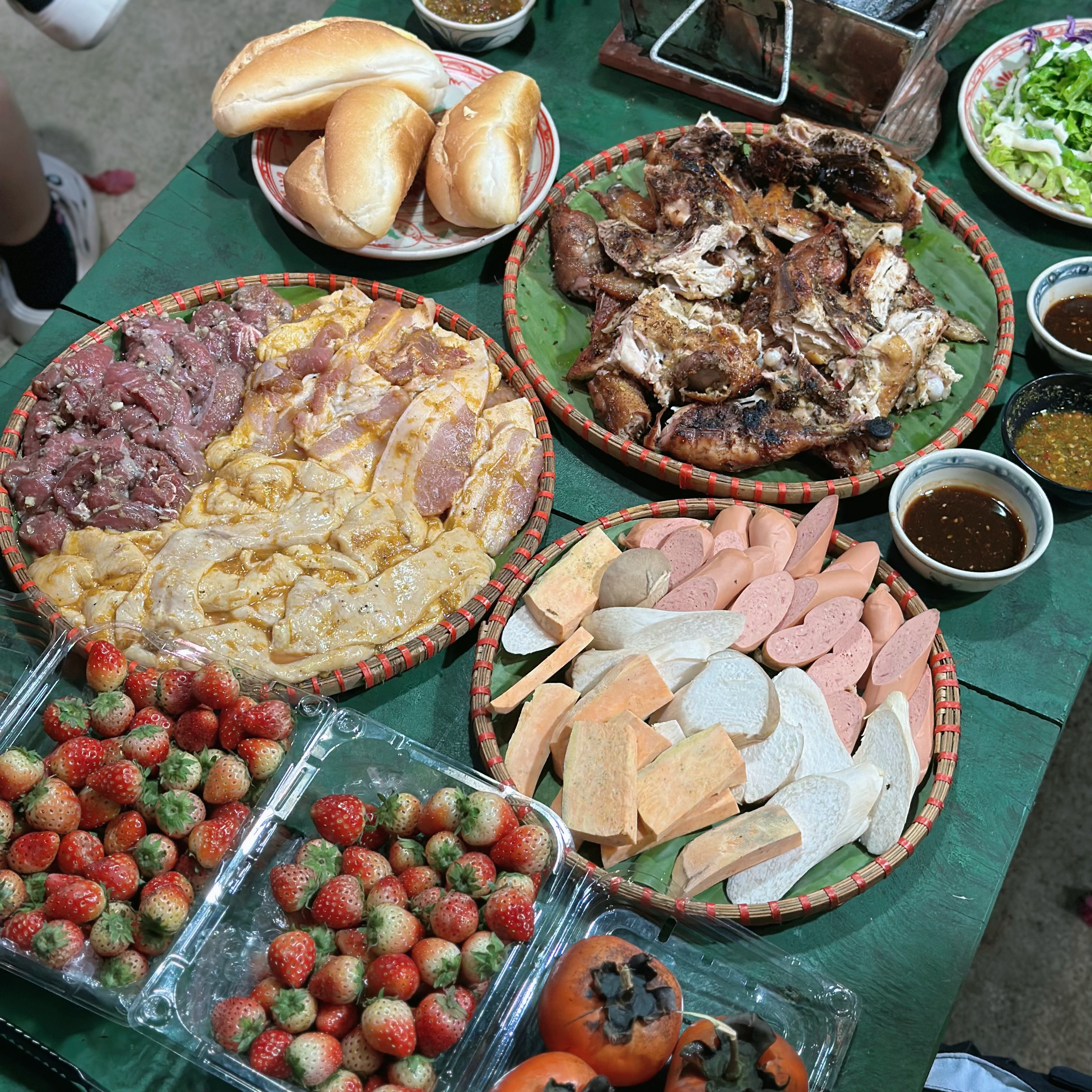 Ở Mộc Châu có rất nhiều đồ ăn, một số món có thể kể như cá tầm, cá suối, lợn bản, gà nướng, trâu gác bếp,… Riêng mình, mình thích gà và lợn bản nướng, vị dễ ăn và rất ngon.