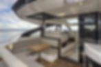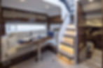 Bên dưới boong là bộ saloon trang nhã được trang trí cùng với các thiết bị hiện đại được yêu cầu thiết kế riêng. Cửa sổ ở thân tàu được lấy cảm hứng từ các mẫu Fairline truyền thống với đường nét cắt gọt tinh tế tạo nên điểm nhấn nổi bật cho toàn bộ diện mạo du thuyền.