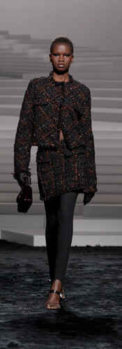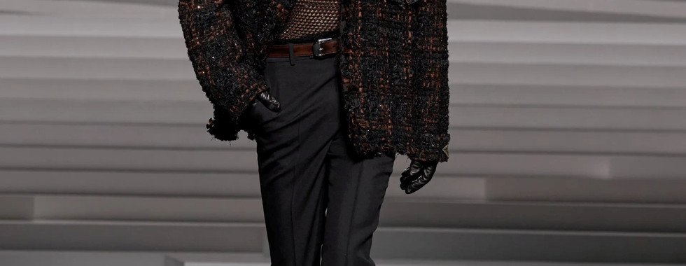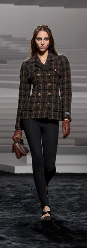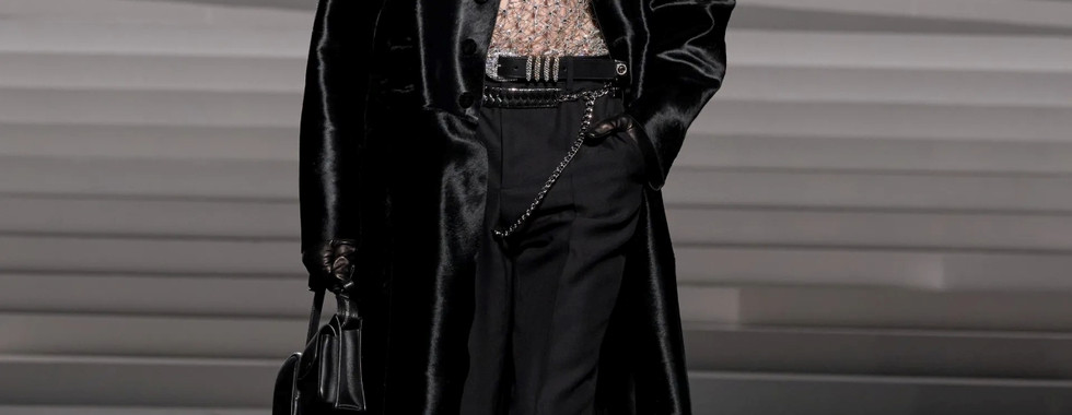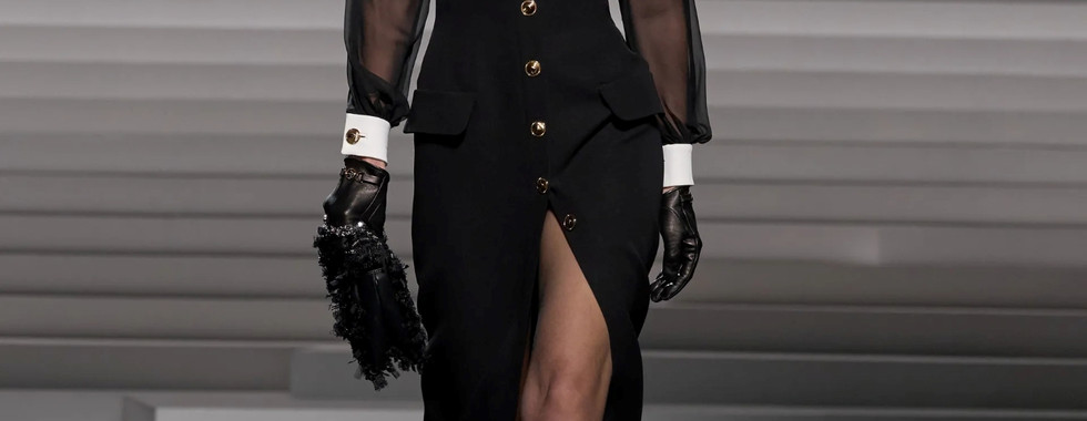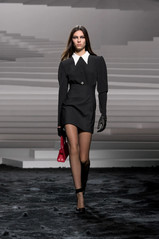 Trong BST Versace Thu Đông 2024, NTK Donatella Versace hé mở cánh cửa bước vào thế giới đầy rẫy sự nghịch lý, nơi người phụ nữ là hiện thân của sự ngây ngô và táo bạo, phong thái nghiêm nghị nhưng tràn đầy gợi cảm, giống như một lời khẳng định mạnh mẽ: nữ giới là những đóa hoa hồng gai kiêu kỳ, xinh đẹp và mỏng manh nhưng không dễ chạm vào. Trong khi đó, phái mạnh là tấm gương phản chiếu tâm hồn của phái nữ - dè dặt nhưng vô cùng sắc sảo. Các thiết kế trong BST được trau chuốt với những đường nét thanh thoát và chất liệu vải cải tiến, thể hiện ý tưởng về một cô gái ngoan ngoãn sở hữu tâm hồn hoang dã, sánh đôi cùng người bạn tâm giao của mình.