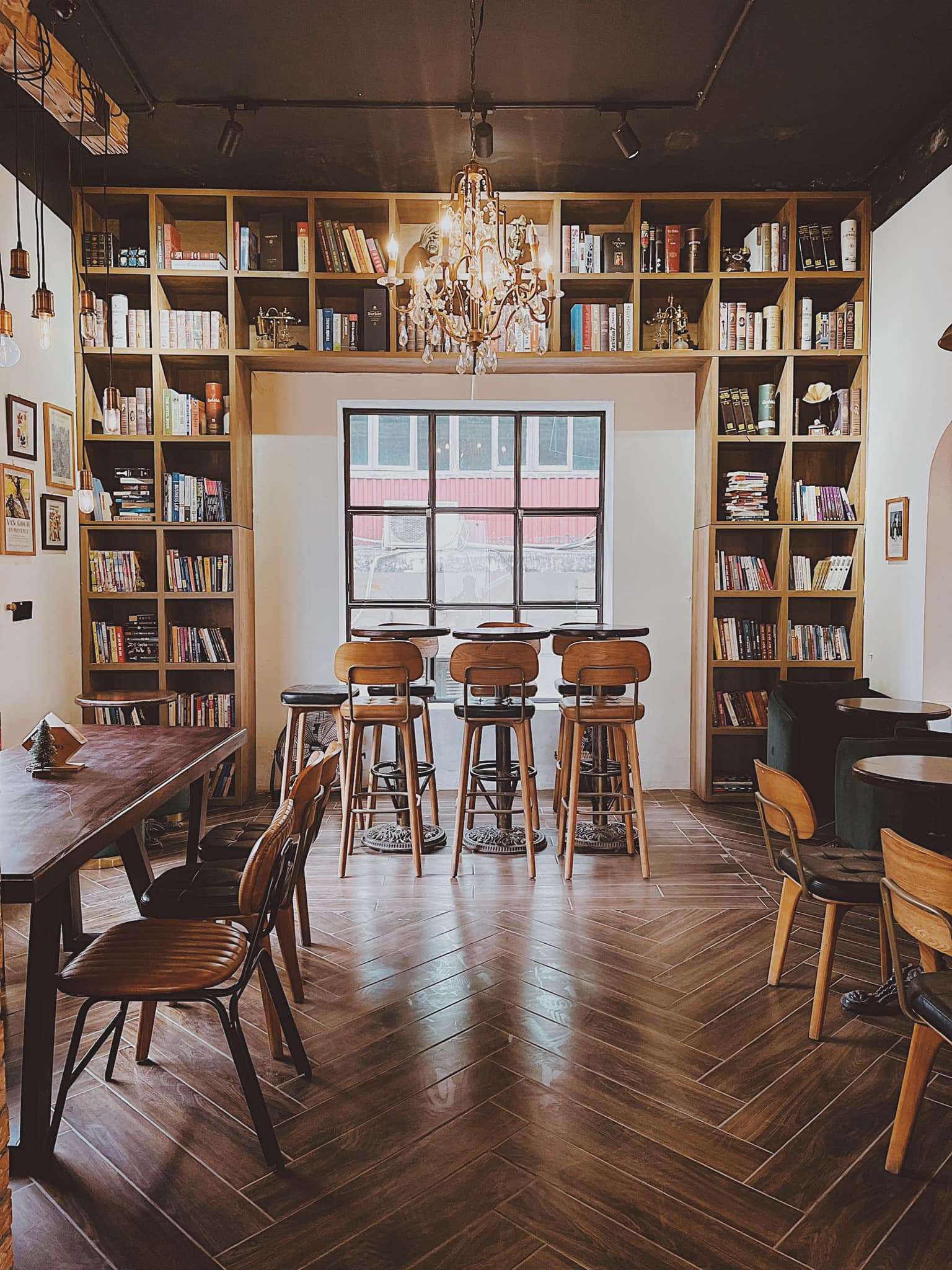 Thêm một quán cà phê với phong cách Châu Âu nhưng có hơi hướng hiện đại hơn. Ngay từ ngoài cửa các bạn trẻ đã có thể có cho mình những tấm hình chất lượng, bên trong quán có 2 tầng với cách trang trí đặc biệt cho mỗi tầng. Quán thu hút nhiều bạn trẻ thích sự yên bình bởi không gian lịch sự, bày trí khéo léo với tủ rượu phương Tây, ghế da đúng chất. Quán lấp đầy các bức tường bằng nhiều bức ảnh và kệ sách nên khách hàng có thể học tập, làm việc ngay trong không gian quán.