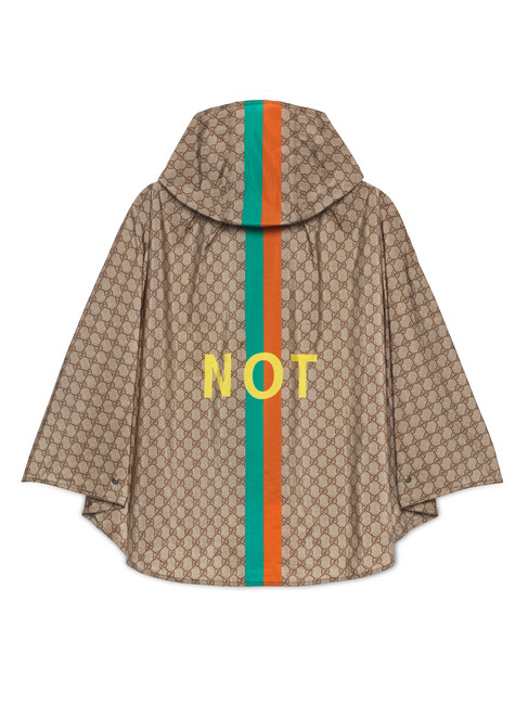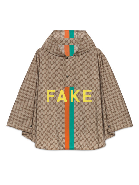 Trong bộ sưu tập mới của Gucci còn bao gồm những chiếc vớ màu trắng ngà hoặc đen. Chạy xuyên suốt chiều dài của những chiếc vớ sẽ là một vạch xanh – đỏ đặc trưng cùng với dòng chữ FAKE/NOT được chia ra 2 bên vớ. Tiếp theo là một chiếc áo choàng oversize chống thấm nước với phần mũ có thể tháo rời và những nét thiết kế tương tự các người “anh em”.