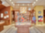 Ngay khi bước lên cầu thang, khách sẽ được chiêm ngưỡng “chiếc khăn carré” bằng gỗ sơn mài được lấy cảm hứng từ tác phẩm “Pégase Paysage” của nghệ sĩ Christian Renociat, do chính những nghệ nhân sơn mài Việt Nam thực hiện, trước khi bước vào không gian tràn ngập gam hồng phấn của khu trưng bày các bộ sưu tập thời trang dành cho nữ. Bước qua không gian thoáng đãng của khu vực trang sức và đồng hồ sẽ tới khu trưng bày các bộ sưu tập thời trang và giày dành cho nam. Một bầu không khí ấm áp được tạo nên từ những tấm thảm dệt mang màu sắc rực rỡ với họa tiết lấy cảm hứng từ hình ảnh các thửa ruộng bậc thang nối nhau trùng điệp. Những bức tường trát vữa Marmorino mang các sắc độ của gam màu cam đất terracotta phía không gian đồ dành cho đồ nữ và các sắc độ vàng đồng trong không gian dành cho đồ nam. Sự bất ngờ đến từ các không gian mang sự thân mật, gần gũi: chẳng hạn phòng thử đồ dành cho nữ được lót một lớp vải màu xanh azure có thêu những chấm tròn màu đồng, tạo cảm giác như làn nước lấp lánh.