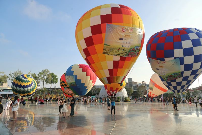 Hàng chục khinh khí cầu, rực rỡ sắc màu tại quảng trường Sa Đéc, thu hút đông đảo du khách đến tham quan, dịp Tết Dương lịch 2026