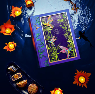 Cho những ai yêu sự kết hợp nhẹ nhàng mà tinh tế giữa truyền thống và hiện đại, hộp bánh ‘Khổng tước quý phái’ chính là một lưa chọn hoàn hảo mang ước nguyện may mắn, an vui và thịnh vượng trong dịp Trung Thu. Hộp có giá 2.488.000 VNĐ gồm bốn bánh (200gr/bánh) với bốn hương vị: gà quay, bào ngư vi cá, phô mai kem thanh long và hạt sen trà xanh.