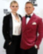 Không có tài liệu nào ghi chú rằng nam diễn viên đóng James Bond không được mặc màu hồng, và lần xuất hiện này của Daniel Craig đã được tính toán vô cùng kỹ càng. Bộ suit của Daniel Craig được thực hiện bởi một trong những nhà may lừng lẫy ở Savile Row (thánh đường của những bộ suit) – Anderson & Sheppard (được thành lập từ năm 1906). Chiếc áo blazer được may theo kiểu dáng áo khoác dạ tiệc với hai hàng khuy cùng ve áo nhọn và rộng. Áo được may tại Ý từ chất liệu nhung mịn và sang trọng đến từ nhà sản xuất Scabal danh tiếng.