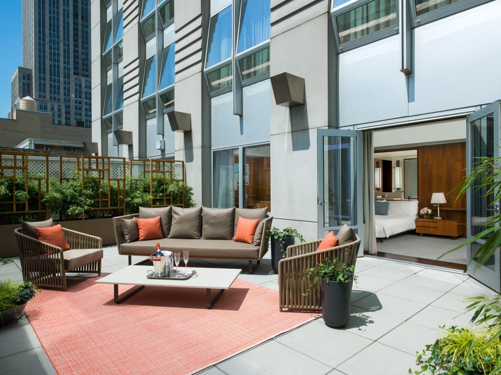 Bạn có thể trải nghiệm sự sang trọng bậc nhất trong phòng Empire State Presidential Suite nằm trên tầng cao nhất. Không gian độc đáo được thiết kế bởi Roche Bobois, nổi bật với các điểm nhấn đậm chất Hermès, các tác phẩm của Roche Bobois và Alex Katz. Các cửa sổ kính suốt từ trần đến sàn mang đến tầm nhìn ra tòa nhà Empire State và ánh sáng tự nhiên tràn ngập.