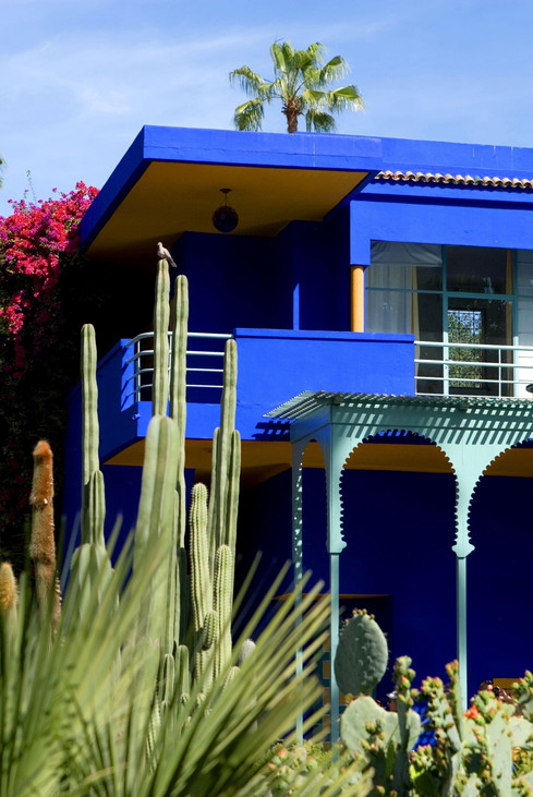 Nghệ sĩ Jacques Majorelle có niềm đam mê mãnh liệt với thực vật ở khu vực Morocco sau khi cư trú ở vùng đất đỏ Marrakesh. Người nghệ sĩ này bắt đầu xây dựng khu vườn Majorelle vào những năm 1929. Điểm nổi bật của khu vườn là đài phun nước nở đầy hoa súng, bên cạnh biệt thự được trang trí kiểu Moorish, được thiết kế với sáng tạo của kiến trúc sư Paul Sinoir vào năm 1931 khi ông đang làm việc trong xưởng vẽ của mình ở tầng cuối cùng. Màu xanh của căn biệt thự được lấy cảm hứng từ màu nước Atlas, có thể gọi là thuật ngữ chỉ một loại màu nhất định. Một màu sắc độc nhất vô nhị và dễ nhận biết, chỉ vẻ đẹp tự nhiên trong tầng lớp đương đại của một công trình kiến trúc.