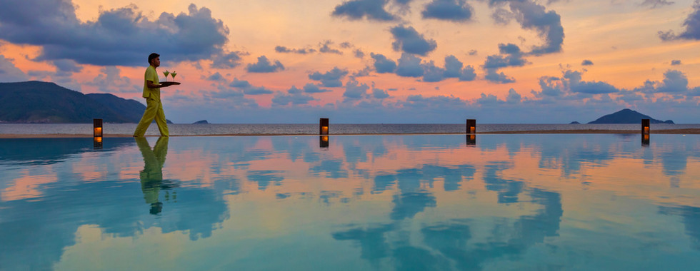 Về đến bờ, bạn sẽ bị cuốn theo các hoạt động trải nghiệm đa dạng tại khu nghỉ dưỡng: khi bóng chuyền, bóng rổ bãi biển, lúc đầy hứng khởi với môn thuyền Kayak, hoà mình vào những ngọn sóng với ván đứng, ván lướt nằm và ván lướt ‘Skim Board’. Trước khi về lại biệt thự, hãy ghé Elephant Bar để 'chill', thưởng thức một ly cocktail hay Gin Tonic mát lạnh trong tiếng nhạc êm ái.