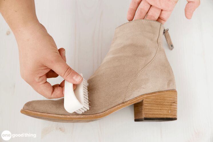 Bước 3: Bạn cần dùng chổi chuyên dụng cho da lộn để phủi hết bụi bẩn trên bốt. Chiếc chổi này còn giúp xóa đi các vết trầy xước, giữ cho da luôn được mềm mại.