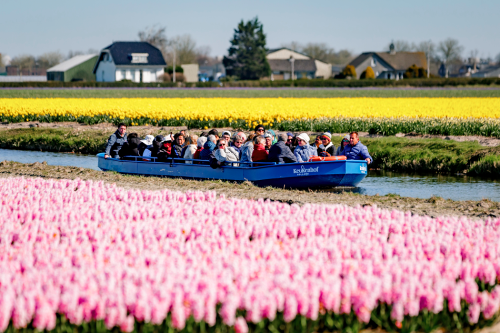 Ngồi thuyền ngắm hoa cũng là trải nghiệm lý thú. Ảnh: Keukenhof