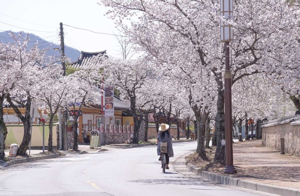Trong khoảng thời gian này, các công viên, đường phố và khu du lịch đều được bao phủ bởi những tán hoa dày đặc, tạo nên khung cảnh lãng mạn đặc trưng của mùa hoa anh đào Hàn Quốc.