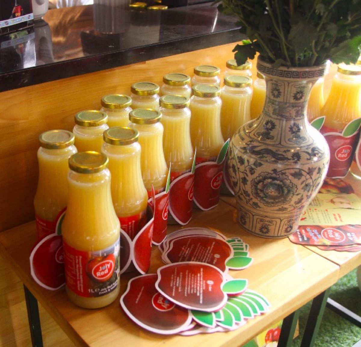Bên cạnh việc giới thiệu loại táo đặc biệt này, V-Stars cũng đồng giới thiệu sản phẩm nước táo ép Joly Red được ép 100% từ táo tươi. Là sản phẩm nước ép hoa quả không chất bảo quản, nước ép táo Joly Red có độ ngọt là đường tự nhiên từ trái táo, được sử dụng công nghệ ép nước bằng phương pháp ép lạnh xử lý áp suất cao cùng công nghệ thanh trùng trong thời gian nhanh 4s để rút hết oxy trong chai giúp nước táo giữ được nguyên lượng vitamin có trong trái cây, hương vị tự nhiên cũng như các vi dưỡng chất của trái táo.