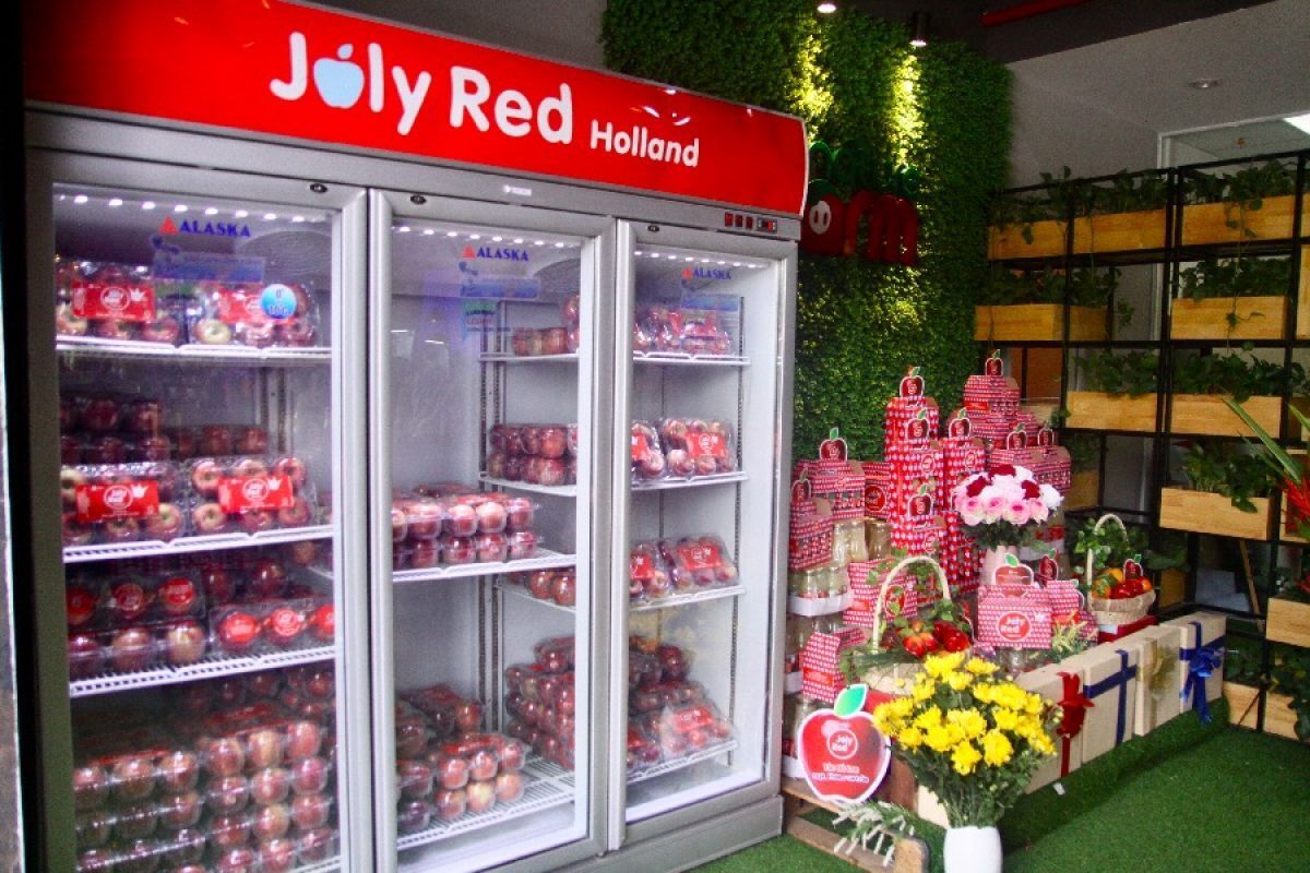 Cũng theo chia sẻ của một đại diện khác đến từ công ty V-Stars, Táo Joly Red được trồng và chăm sóc theo tiêu chuẩn Global Gap và BRC đảm bảo sản phẩm tuyệt đối an toàn. Táo sau khi được thu hoạch sẽ được chuyển ngay vào kho lạnh bảo quản 0-4 độ, hàm lượng oxy thấp để bảo quản. Đây là tiêu chí quan trọng để đảm bảo độ tươi ngon và chất dinh dưỡng trong sản phẩm.