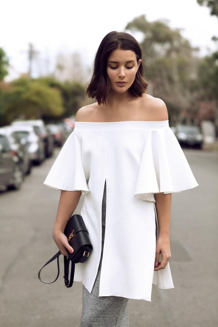 Đừng ngại khoe khéo những đường nét sắc sảo trên cơ thể bạn. Cách đơn giản nhất chính là diện những chiếc áo hay đầm trễ vai quyến rũ và nữ tính. Bạn hoàn toàn có thể kết hợp kiểu áo này với các loại chân váy, quần jeans khác nhau cùng giày cao gót, giày búp bê hay thậm chí là cả giày thể thao năng động.
