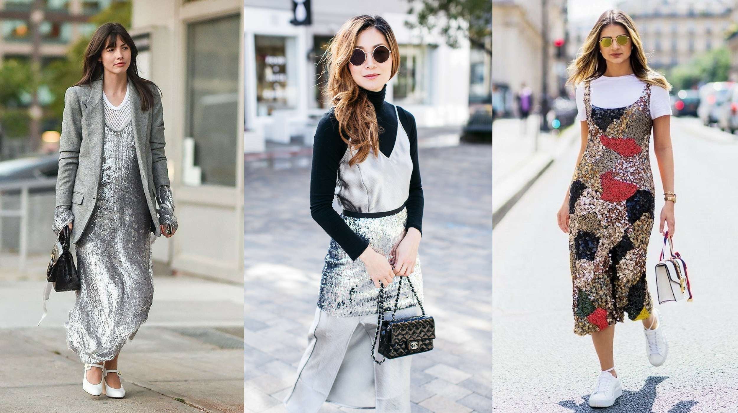 Đừng lầm tưởng xu hướng ánh kim chỉ dành cho những cô nàng trẻ tuổi. Trang phục ánh kim lấp lánh không những thích hợp cho nhiều độ tuổi mà còn giúp bạn xuất hiện với một diện mạo trẻ trung và sành điệu. Khi tham dự một bữa tiệc hay sự kiện, hãy tự tin diện váy slip dress, jumpsuit đính sequin hay áo,chân váy nổi bật từ chất liệu metallic.