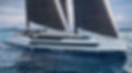 Hai cột buồm làm từ chất liệu sợi carbon cố định ba cánh buồm thủy lực. Nhưng cánh buồm ở giữa được dựng ngược, chân buồm đảo lên trên cùng. Du thuyền hứa hẹn mang lại trải nghiệm tương đồng với những thuyền câu cá truyền thống.