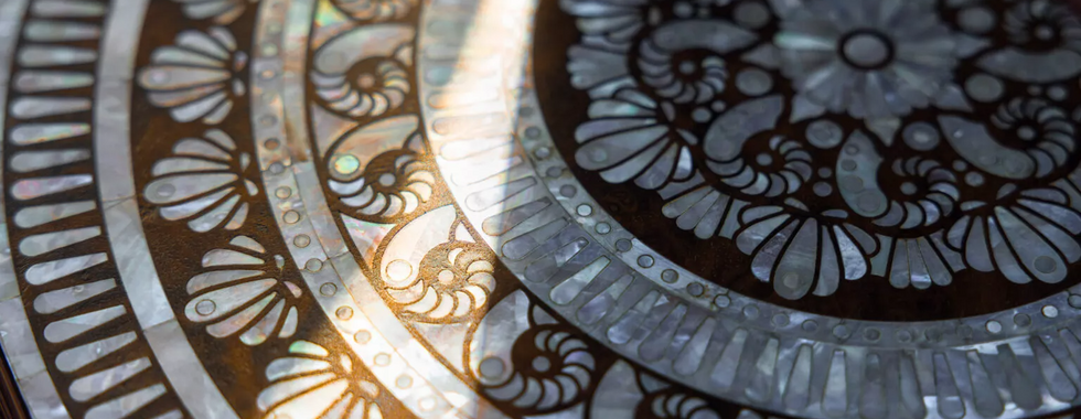Bề mặt phía trên Picnic Table (bộ bàn ghế dã ngoại) có hoa văn hình tròn phức tạp lấy cảm hứng từ thiết kế Ả Rập truyền thống, thu hút ánh nhìn vào điểm trung tâm. Mỗi mặt bàn được khảm 1.351 mảnh xà cừ riêng biệt, trong đó mỗi mảnh được chọn riêng và đặt thủ công vào khảm gỗ óc chó có gờ xung quanh, sau đó được dán kín bằng sơn mài trong suốt.