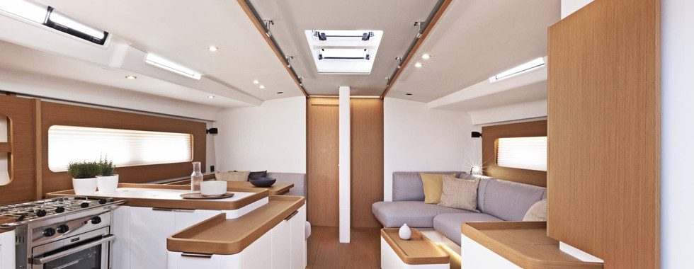 Các không gian trên boong được thiết kế để tạo sự thoải mái và trang nhã với gỗ sơn mài tông trắng trên nền gỗ teak cổ điển. Một saloon ấm cúng đủ chỗ ngồi đối diện cho 6 người. Cabin chủ nhân lộng lẫy được trang hoàng nhiều nội thất chất lượng cao: phòng tắm lớn kèm ghế gỗ teak, vòi sen cao cấp, tủ khóa có đèn rộng rãi cùng ngăn kéo tiện lợi bên dưới giường.