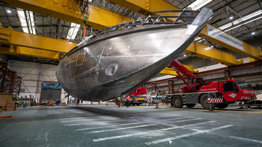Công ty đóng tàu Wight (WSC) có trụ sở tại Đảo Wight (Anh) đã được giao trọng trách hoàn thiện mẫu thuyền hybrid dài 26.2m. Cùng lúc đó, cấu trúc thượng tầng bằng hợp kim nhôm sẽ sớm được tiến hành lắp đặt.
