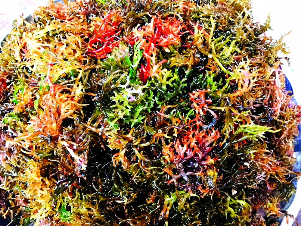 Những sợi rau nhỏ dài, phân nhánh như san hô. Rau mang nhiều màu sắc như xanh, hồng hoặc tím, tạo nên vẻ ngoài khá bắt mắt. Khi thu hoạch, người dân phải lặn xuống biển để hái từng cụm rau, công việc đòi hỏi sự khéo léo và kinh nghiệm.