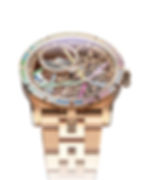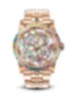 Với phiên bản vàng hồng, các chi tiết bộ máy được làm nổi bật nhờ vào cấu trúc vi tinh thể Sapphire cùng dải màu cầu vồng.