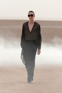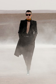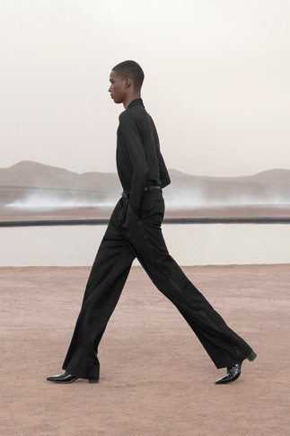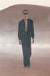 Quần cạp cao với ống rộng tạo hiệu ứng kéo dài chiếm ưu thế, được nhấn nhá bằng những món phụ kiện tiết chế hoặc cường điệu hóa. Các thiết kế nhìn chung thoải mái hơn, cho thấy được sự thư thái của cuộc sống thường nhật tại Marrakech. Áo khoác được thiết kế rộng rãi, uyển chuyển, cấu trúc bớt cầu kỳ: áo khoác satin thắt đai lưng trùm tới gót chân đối lập với những chiếc áo khoác may đo mang phom dáng sắc cạnh. Grain de poudre, một loại vải len mịn được Yves Saint Laurent vô cùng yêu thích và thường xuyên sử dụng, cũng xuất hiện nhiều xuyên suốt bộ sưu tập Saint Laurent Xuân Hè 2023 dành cho nam giới.