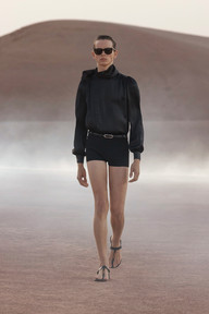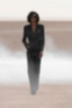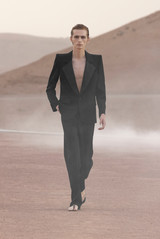 Tuxedo, yếu tố dường như quan trọng nhất trong ngôn ngữ thời trang của Saint Laurent, một lần nữa được diễn giải lại, tinh chỉnh và sáng tạo, tiếp nối các thiết kế mà Vaccarello từng thực hiện trong bộ sưu tập Thu Đông 2022 dành cho nữ giới. Điều thú vị của bộ sưu tập đến từ những kỹ thuật xử lý cổ áo và vai áo kiểu mới, các tùy chọn áo khoác một hoặc hai hàng khuy, cũng như sự tái xuất của bộ tuxedo phóng khoáng hiện đại trên chất liệu lụa màu kem nhẹ nhàng.