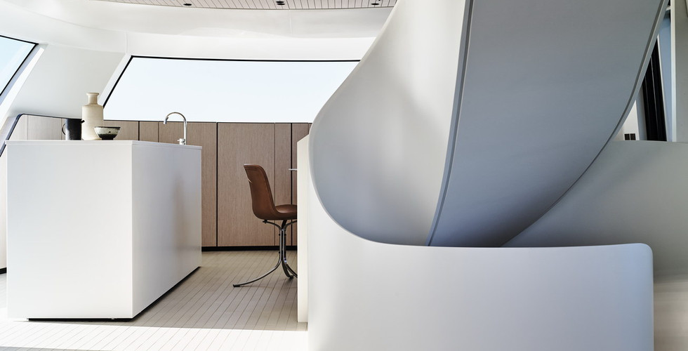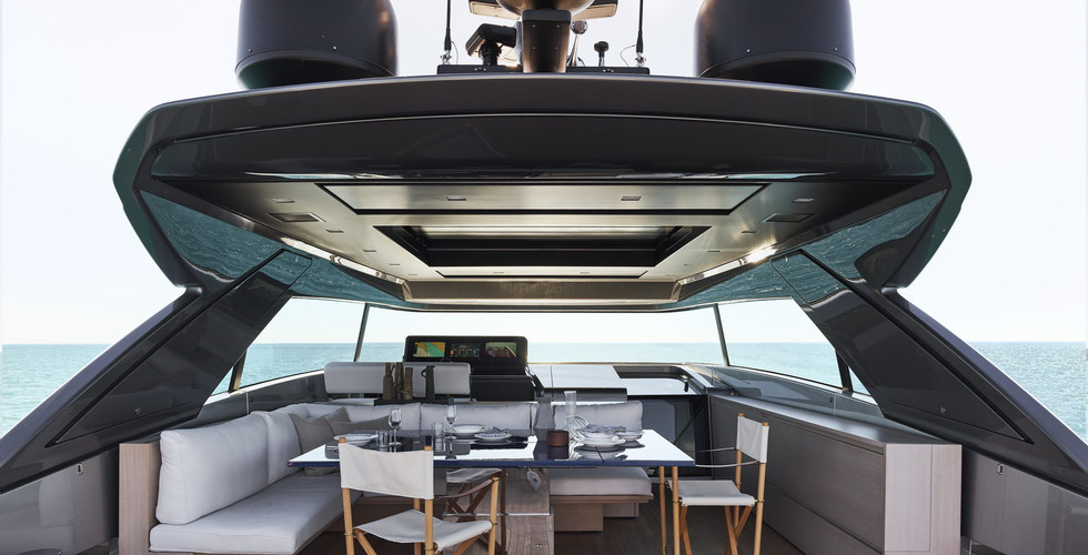 Ở bên trong, SX76 vẫn được Piero Lissoni chắp bút cho nội thất, ta sẽ tìm thấy một phiên bản nhỏ hơn của SX88 được tái hiện trọn vẹn trong nội thất. Vẫn là cách bố trí thông minh để đưa phần trạm lái lên boong thượng, tạo cho boong chính có thêm không gian để sắp xếp nội thất. Chủ nhân có thể chọn cho mình một không gian mở xuyên suốt boong chính với sofa, bàn ăn, hệ thống giải trí và một nhà bếp mở hệt như phòng khách của những căn penthouse xa xỉ.