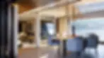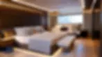 Cầu thang bằng nhôm được thiết kế tinh xảo, không chỉ là điểm nhấn nghệ thuật mà còn giúp khách dễ dàng di chuyển giữa các tầng. Ánh sáng tự nhiên tràn ngập phòng khách và khu vực của chủ sở hữu nhờ những ô cửa sổ lớn, mang đến cảm giác rộng rãi và thoáng đãng. Phòng ngủ của chủ sở hữu còn được trang bị một sân hiên riêng, nơi bạn có thể tận hưởng những khoảnh khắc riêng tư tuyệt vời. Bốn phòng khách khác được bố trí khéo léo trên boong tàu dưới.