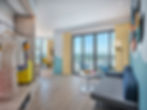 Tất cả 250 phòng nghỉ tại khách sạn đều toát lên bầu không khí vui tươi với lối kiến trúc độc đáo kết hợp giữa những mảng hình khối và những chi tiết uốn lượn hài hòa, cũng như nội thất mang màu sắc sinh động đầy sáng tạo.