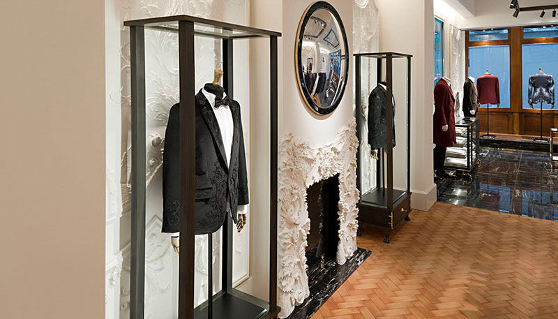 Tại cửa hàng Alexander McQueen trên phố Savile Row, bạn có thể đặt cho mình những bộ trang phục Bespoke cao cấp nhờ từ kỹ thuật may đo truyền thống đan xen hiện đại và đội ngũ thợ may tài năng của nhà thiết kế quá cố Alexander McQueen. Khách hàng sẽ được lựa chọn từ chất liệu cho đến hoa văn của vải, được làm từ những những xưởng dệt hàng đầu thế giới.