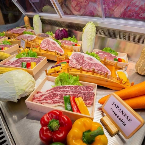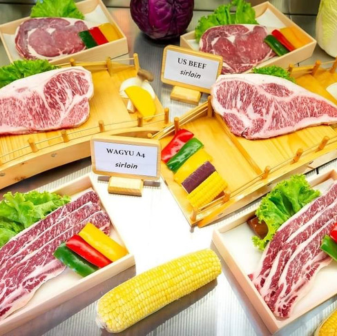 Đặc biệt, khách hàng có thể được thưởng thức món bò Wagyu A5, loại thượng hạng cao cấp nhất tại Nhật Bản. Mặt hàng này được nhập theo đường hàng không và bảo quản ở nhiệt độ -18 độ C. Phần thịt này được lấy từ phần thăn nội ngon và hiếm nhất của con bò Wagyu thuộc giống bò đen Tajima. Đây là loại bò được nuôi với chế độ dinh dưỡng cao cấp, chúng chuyên ăn các loại ngũ cốc chất lượng cao, uống nguồn nước tinh khiết và nghe nhạc cổ điển. Do đó, phần thịt bò wagyu A5 nhìn khá bắt mắt với những lớp vân mỡ cẩm thạch và hương vị mềm, đậm đà.