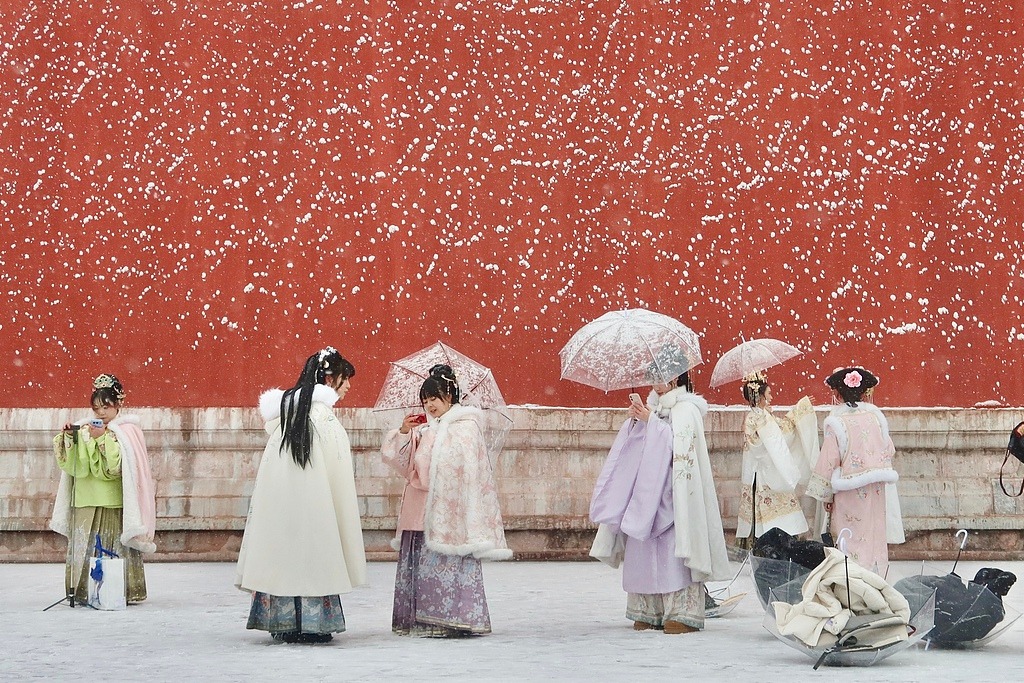 Những bông tuyết phủ trên mái ngói vàng, tường thành đỏ son, tôn lên vẻ đẹp uy nghi và trầm mặc của Cố Cung. Sự tương phản giữa những mảng màu của công trình kiến trúc dưới ‘cơn mưa tuyết’ huyền ảo tạo nên bức tranh đẹp cuốn hút. Ghé thăm nơi đây, du khách đừng bỏ lỡ trải nghiệm ngắm tuyết và check-in trong trang phục truyền thống.