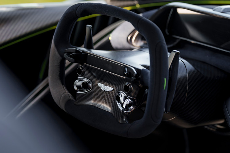 Valhalla cũng là siêu xe động cơ đặt giữa sản xuất hàng loạt đầu tiên của hãng được ra mắt ở cả hai phiên bản tay lái bên trái và bên phải, qua đó nâng tầm hơn nữa sức hấp dẫn của nó trên thị trường quốc tế. Không gian buồng lái đã được tăng lên so với Aston Martin Valkyrie, mặc dù vẫn còn nhiều dấu ấn lấy cảm hứng từ xe đua thể thao, chẳng hạn như thiết kế buồng lái lùi về phía sau với kiểu công thái học đơn giản, tập trung vào người lái. Một hệ thống Aston Martin HMI mới có màn hình cảm ứng trung tâm sẽ được tích hợp cả Apple CarPlay và Android Auto.